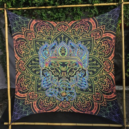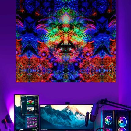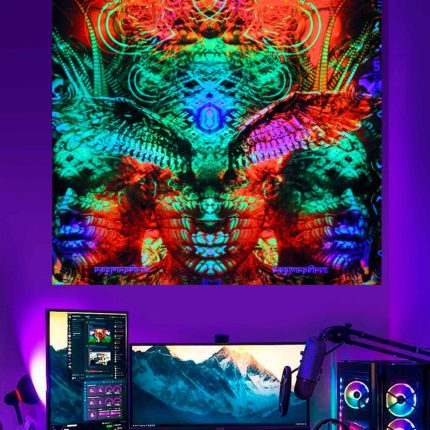 Spiritual Tapestry "MANU" UV-Reactive backdrop tapestry 3D Visionary Art Neon shamanic trippy Blacklight