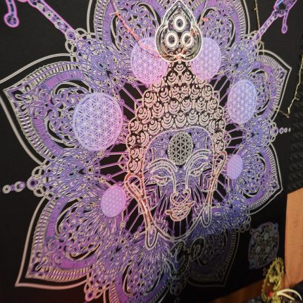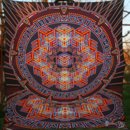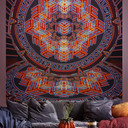 Uv-reactive backdrop tapestry, Psychedelic Poster sacred geometry Meditation room Visionary Art Neon light Psytrance Party