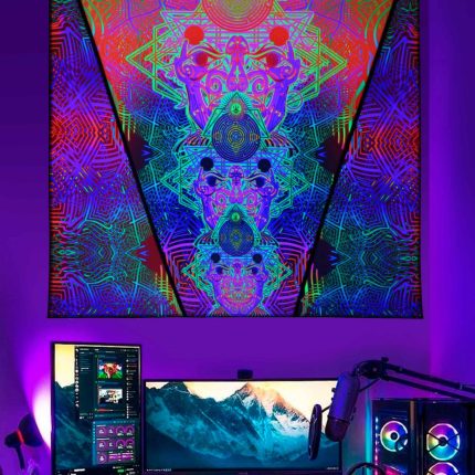 UV psychedelic blacklight Backdrop SACRAL SCULL Blacklight trippy sculls Esoteric art Spiritual Tapestry Chakra balancing Fabric Poster