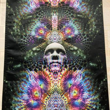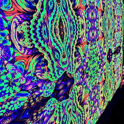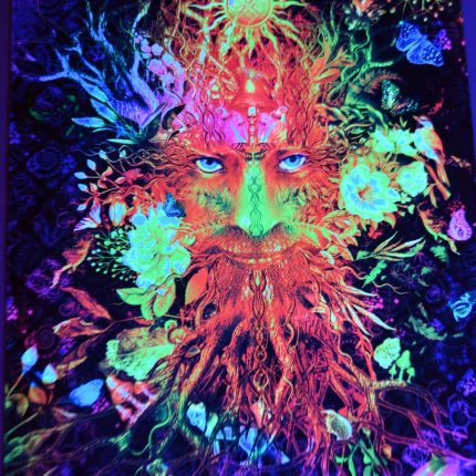 Spiritual Lycra Tapestry, uv backdrop forest spirit tapestry Esoteric Visionary Art Neon light Synth Trippy art Psy Blacklight