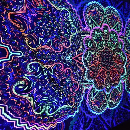 UV-Reactive backdrop – Mandala – Fluorescent Tapestry Visionary psychedelic Art blacklight Psy trance party Sacred Geometry Neon light