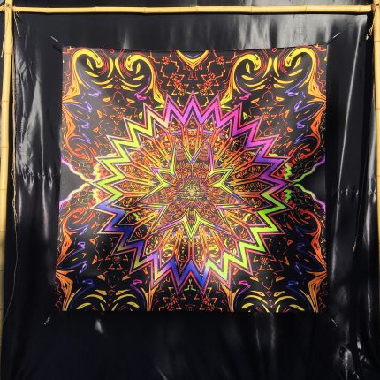UV Psychedelic Fluorescent Trippy Tapestry Saten Art Print, Fluorescent Sublimation Print, Blacklight, Visionary Art