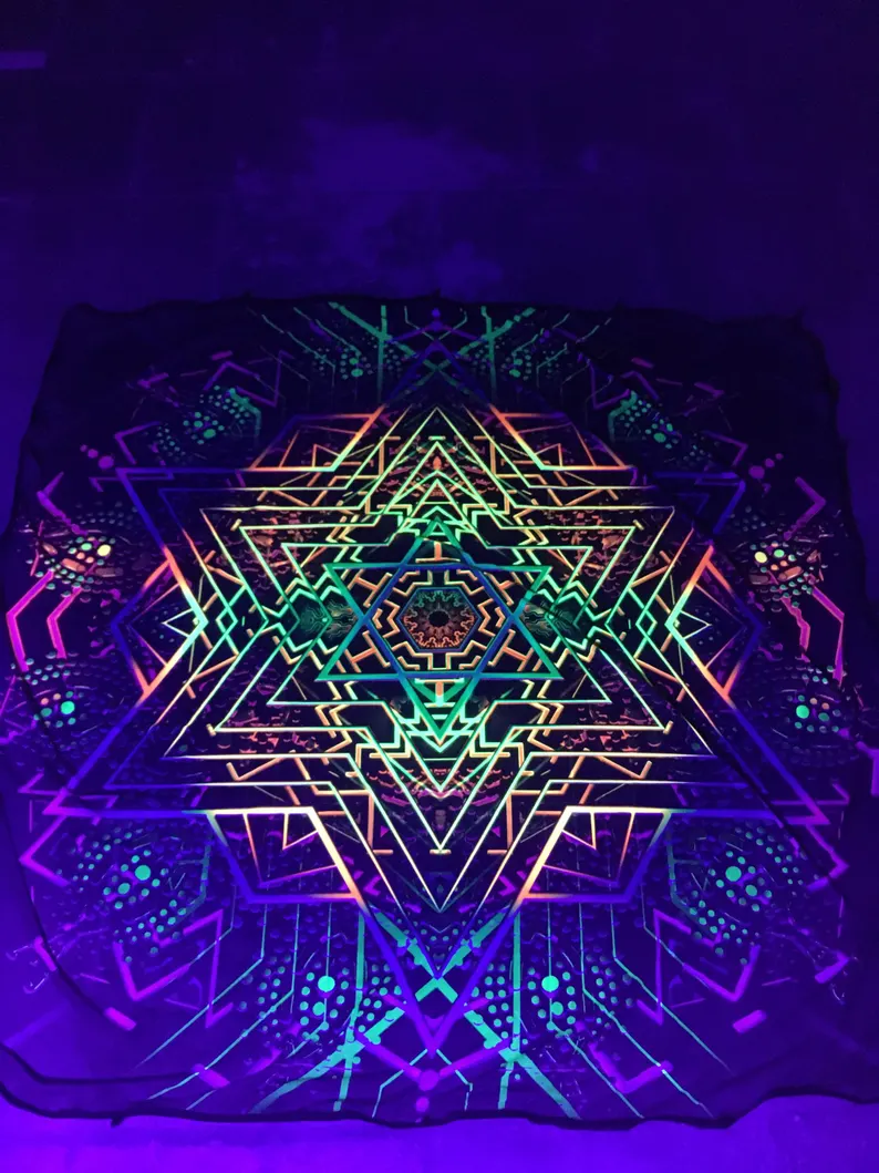 UV Reactive Fluorescent lycra triangle – METATRON – Ceiling decor Sacred Geometry Canvas Spiritual Tapestry Blacklight Gift Trippy