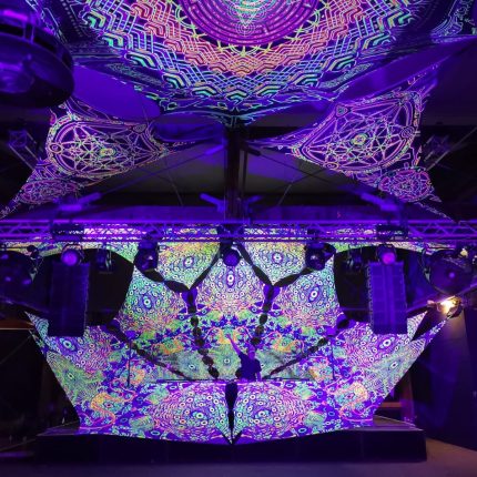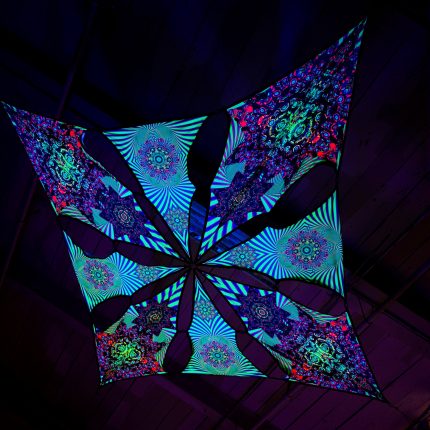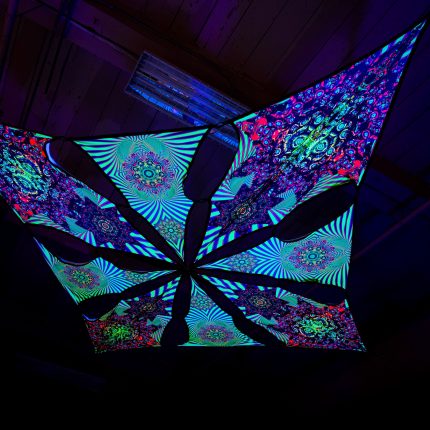 UV-Reactive Psychedelic Decoration Canopy *Metatron MIX XL Size* – Ceiling Decoration, Trippy Installation. This magnificent masterpiece can be seen for hours and each time to discover new worlds and psychedelic space.