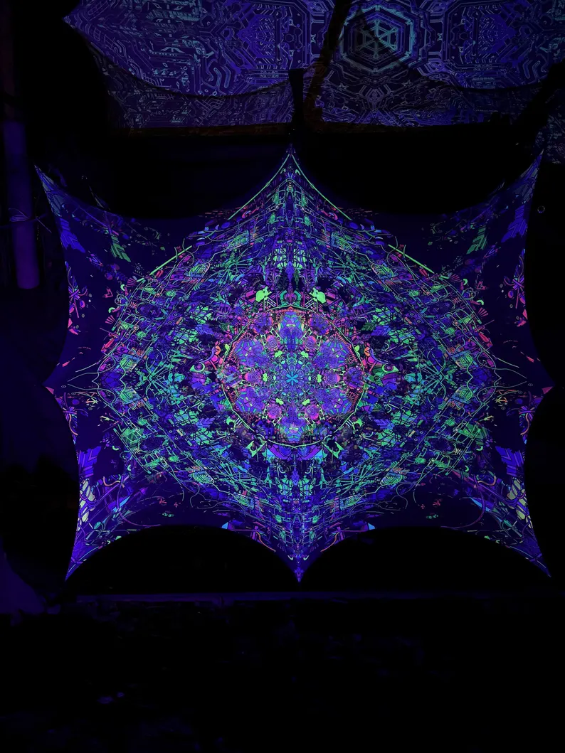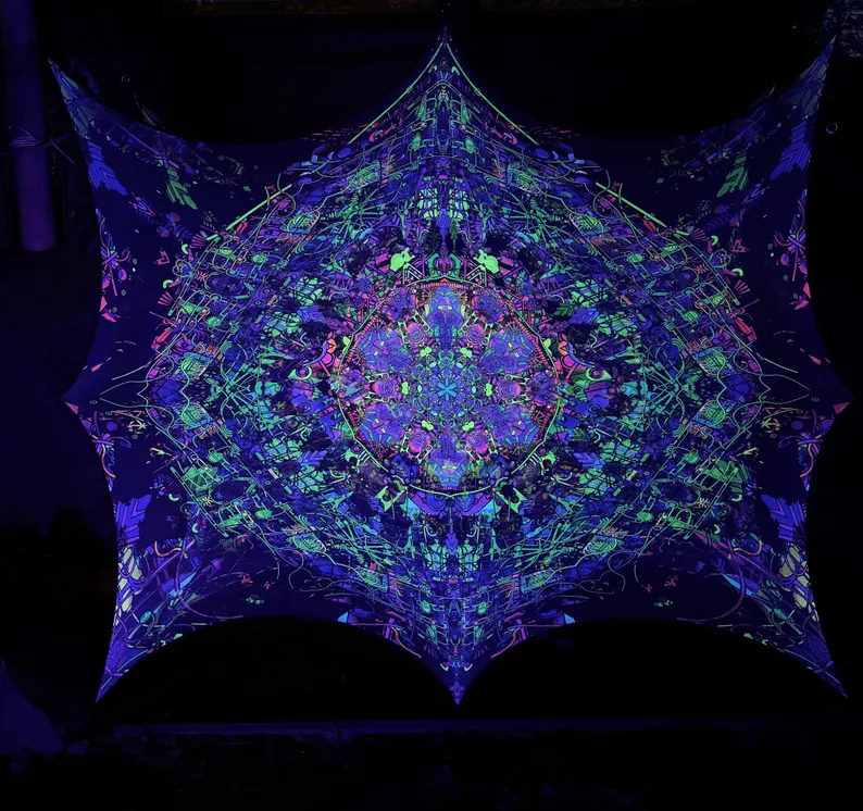 We specialize in uv reactive psychedelic art, large psychedelic tapestry, aesthetic tapestry, trippy tapestry, spiritual posters, abstract wall decor, sacred geometry party decorations, backdrop decoration, sacral geometry, uv backdrop, blue light tapestry, etc.