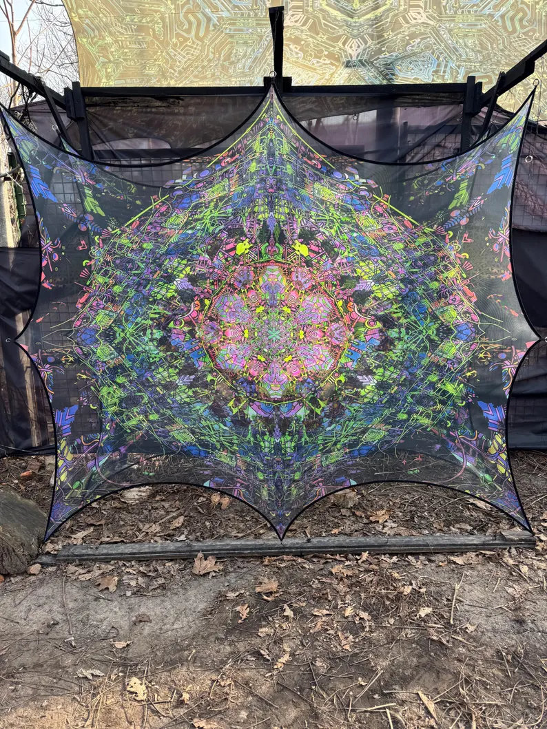2 Layers Neon Mesh Prints Tapestry – 3D UV Fractal Artwork on Fabric
