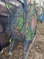 Illuminate your space with this stunning 2 Layers Neon Mesh Prints 3D Installation tapestry! Created with UV fractal art on blacklight spiritual fabric, this unique piece doubles as a fabric poster and adds a touch of aesthetic appeal to any room.