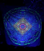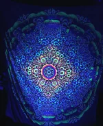 Transform your space into an oasis with our Fractal Mandala Tapestry. This intricate piece features mesmerizing and vibrant colors that come to life under the glow of blacklight.