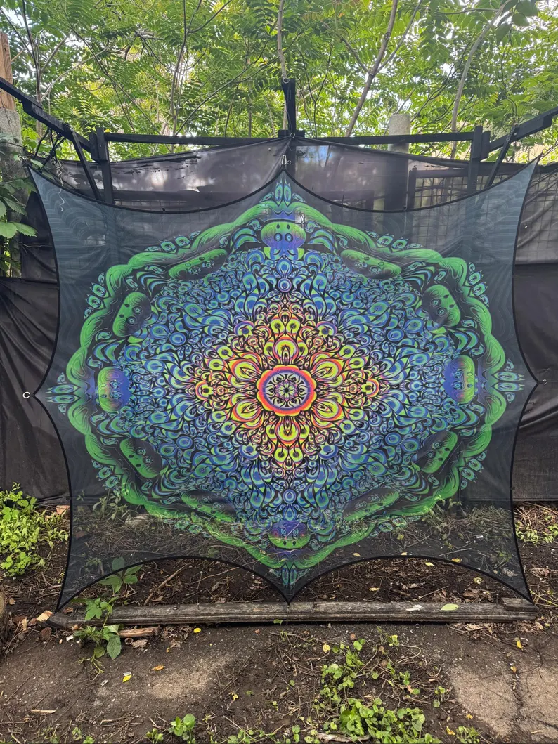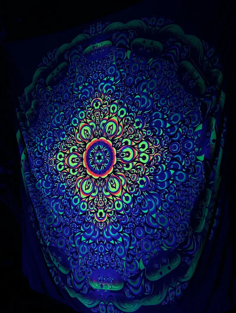 We offer Neon sign art, sacred geometry art, Mandala Design, black light tapestry, funky wall art, large wall hanging, Mesh Installation, trippy poster, UV Badding, printable art, psy artwork, wall tapestry, party decorations, tapestry aesthetic, trippy art, space poster, printed mesh fabric, Blacklight backdrop, UV reactive Tapestry, etc.