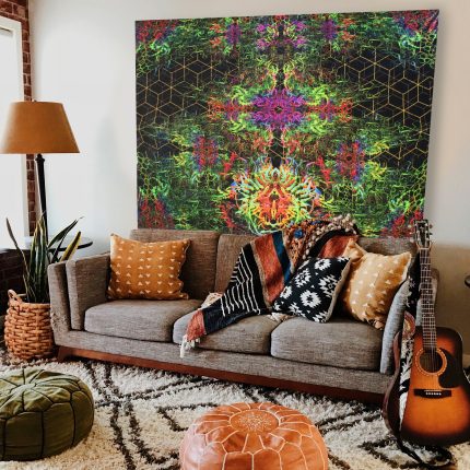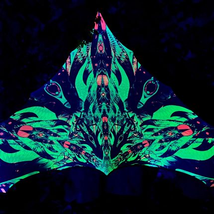 We specialize in rave accessories, uv psychedelic art, large tapestries, Blacklight Tapestry, Psychedelic backdrop, fluorescent tapestry, psychedelic tapestry, aesthetic tapestry, Festival Canopy, trippy ceiling decor, Handmade Triangles, sacred geometry art, party decorations, glow in the dark, uv reactive triangle, neon sign art, DJ stage, DJ booth, psychedelic canopy, blacklight art, festival outfit, UV Floral Tapestry, psychedelic art, etc.