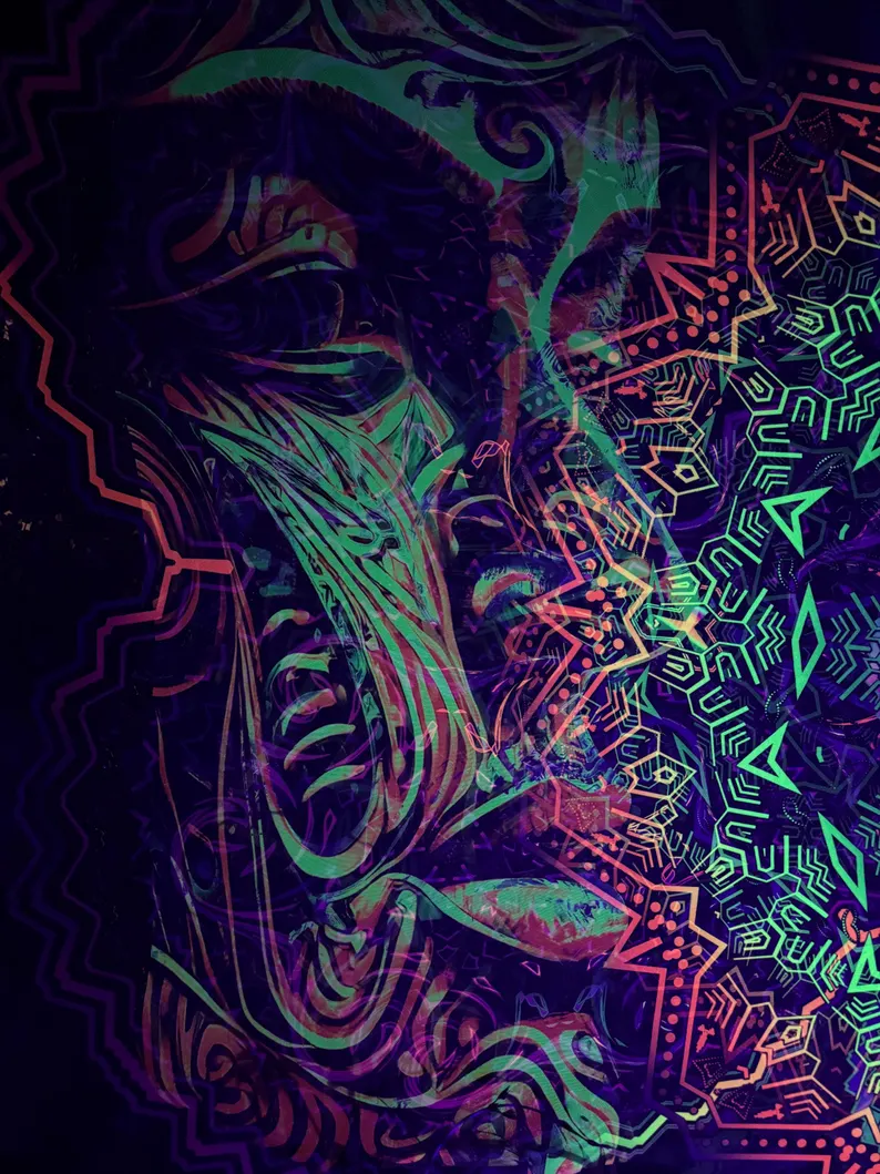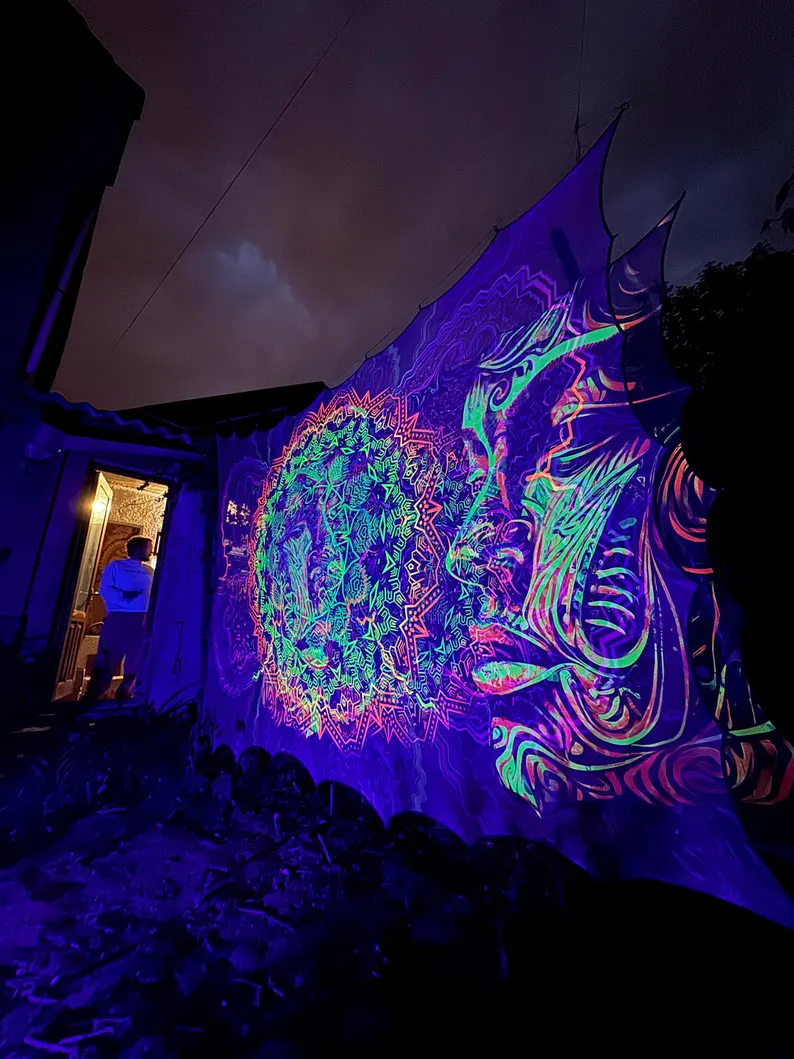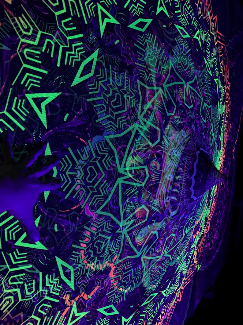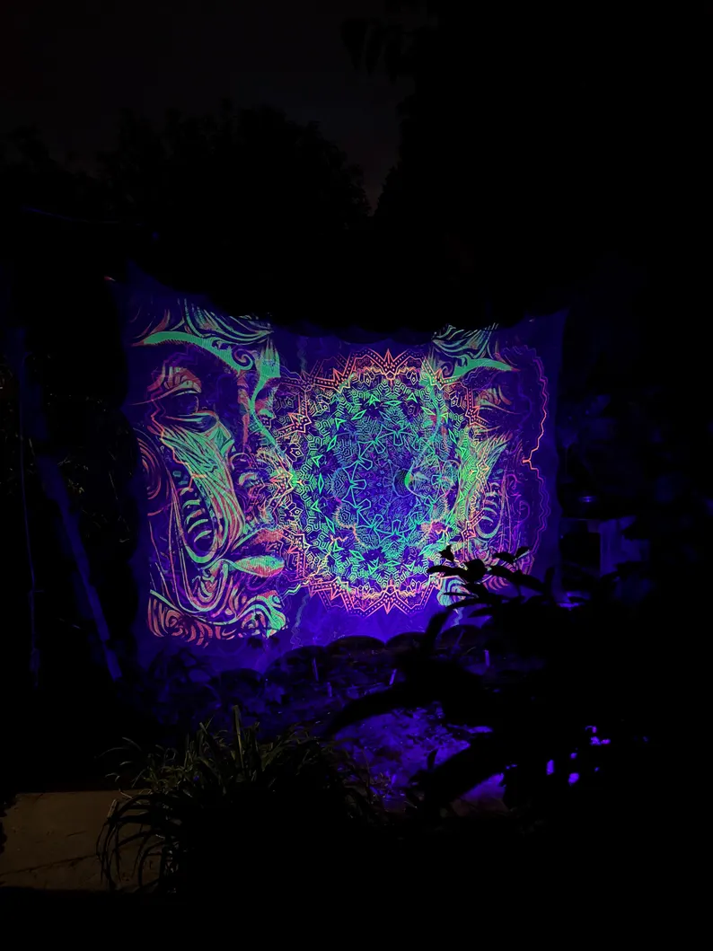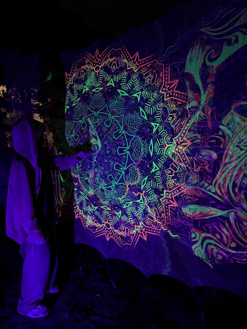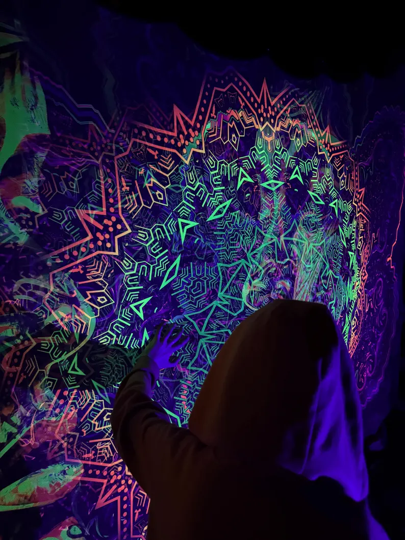 Blacklight Tapestry, Glow in the Dark UV Wall Art, Psychedelic Room Decor, Trippy Home Decoration, Gift for Party or Meditation