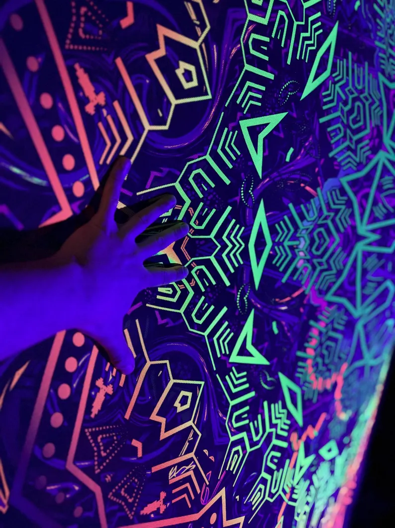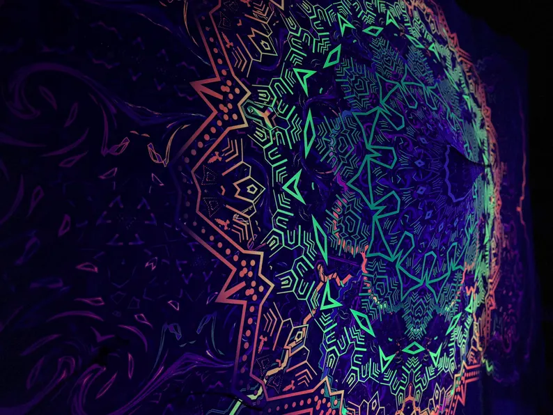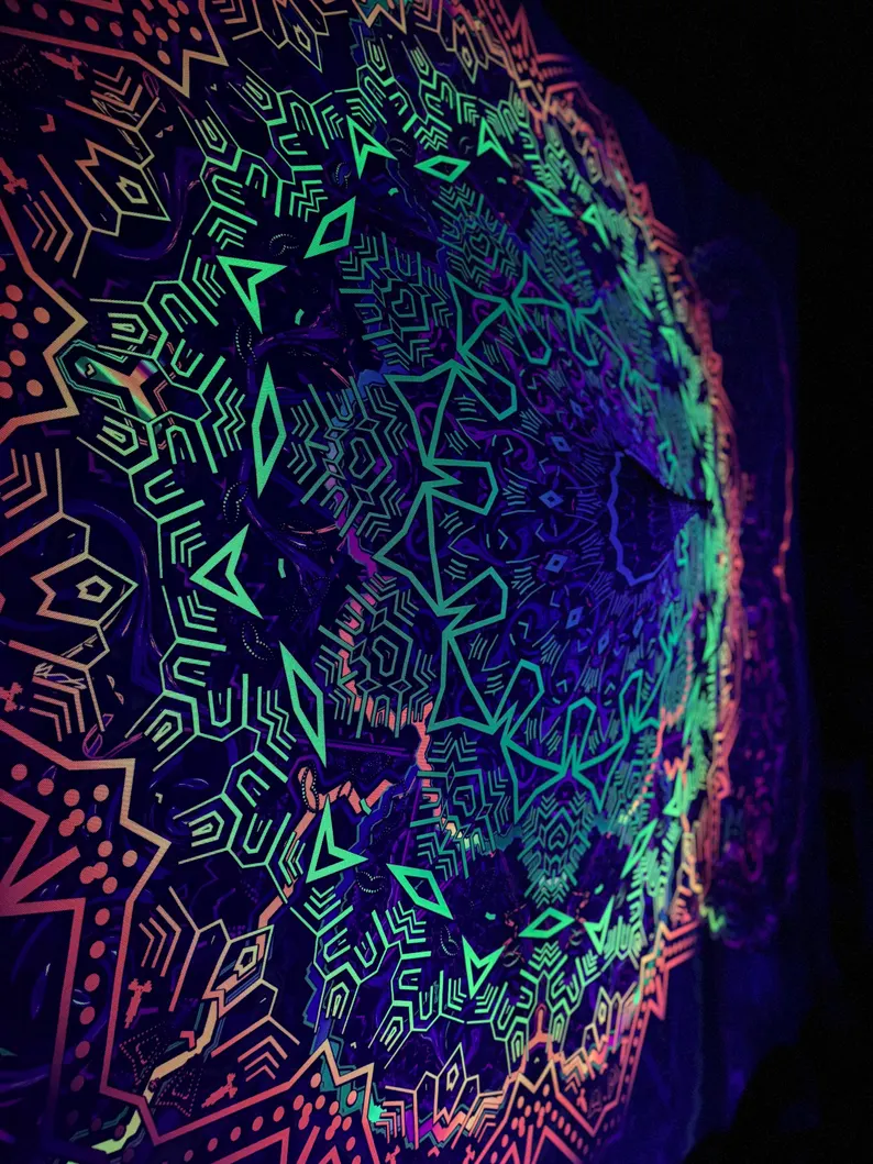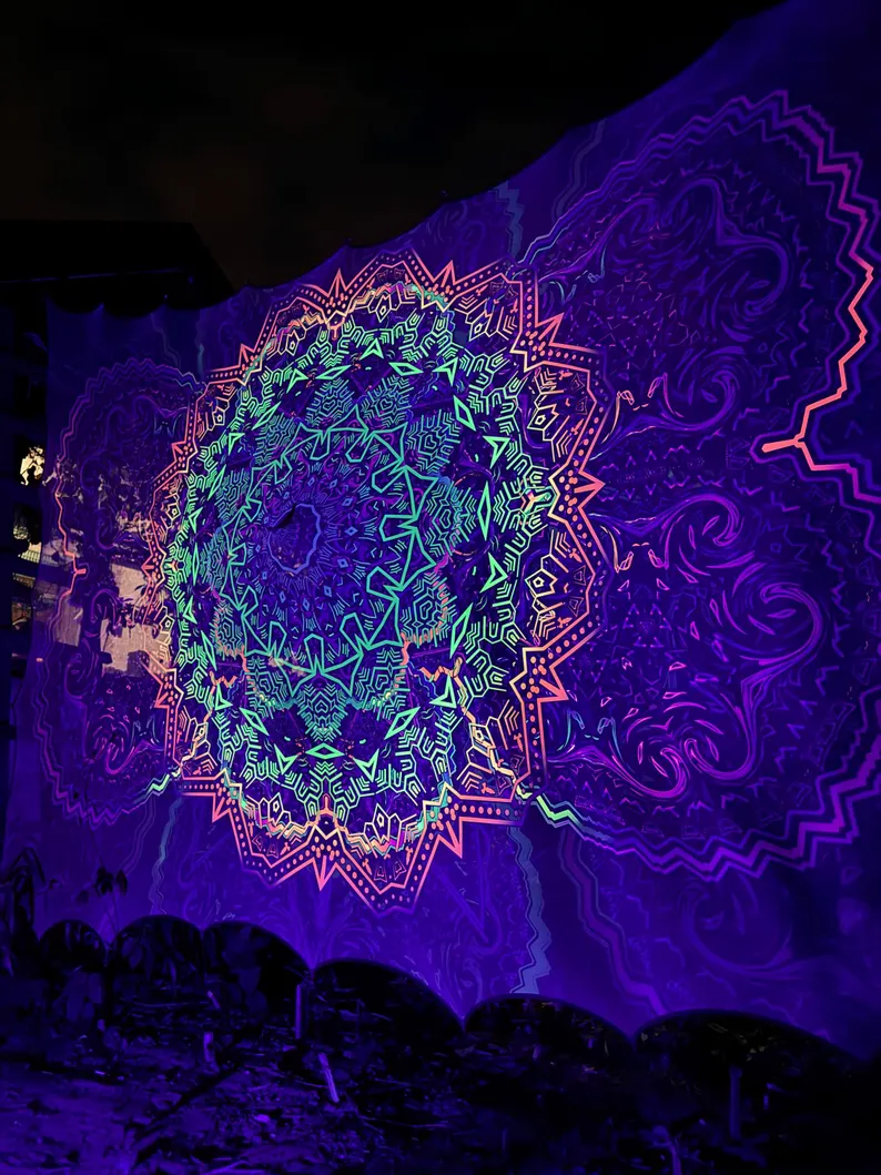 We offer 3d art tapestry, Neon sign art, sacred geometry, festival decor, large wall hanging, trippy poster, printable art, wall tapestry, party decorations, uv reactive backdrop, music wall art, tapestry aesthetic, trippy backdrop, space poster, glow in the dark, psy uv banner, etc.