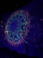 This Blacklight Spiritual Tapestry features vibrant fractal art, making it the perfect aesthetic addition to any space. The intricate designs and neon sign art create mesmerizing glow art that brings your walls to life. Enhance your ambiance and dive into a world of color and creativity today!