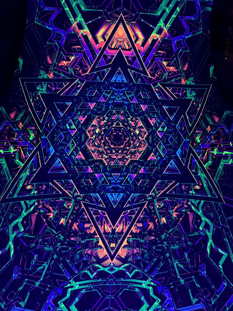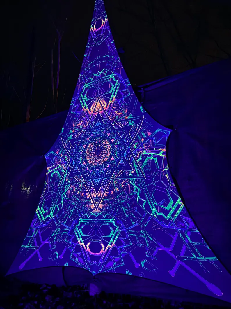 Psychedelic Blacklight UV Triangle, Festival Canopy, Party Tapestries, uv trippy sacral geometric
