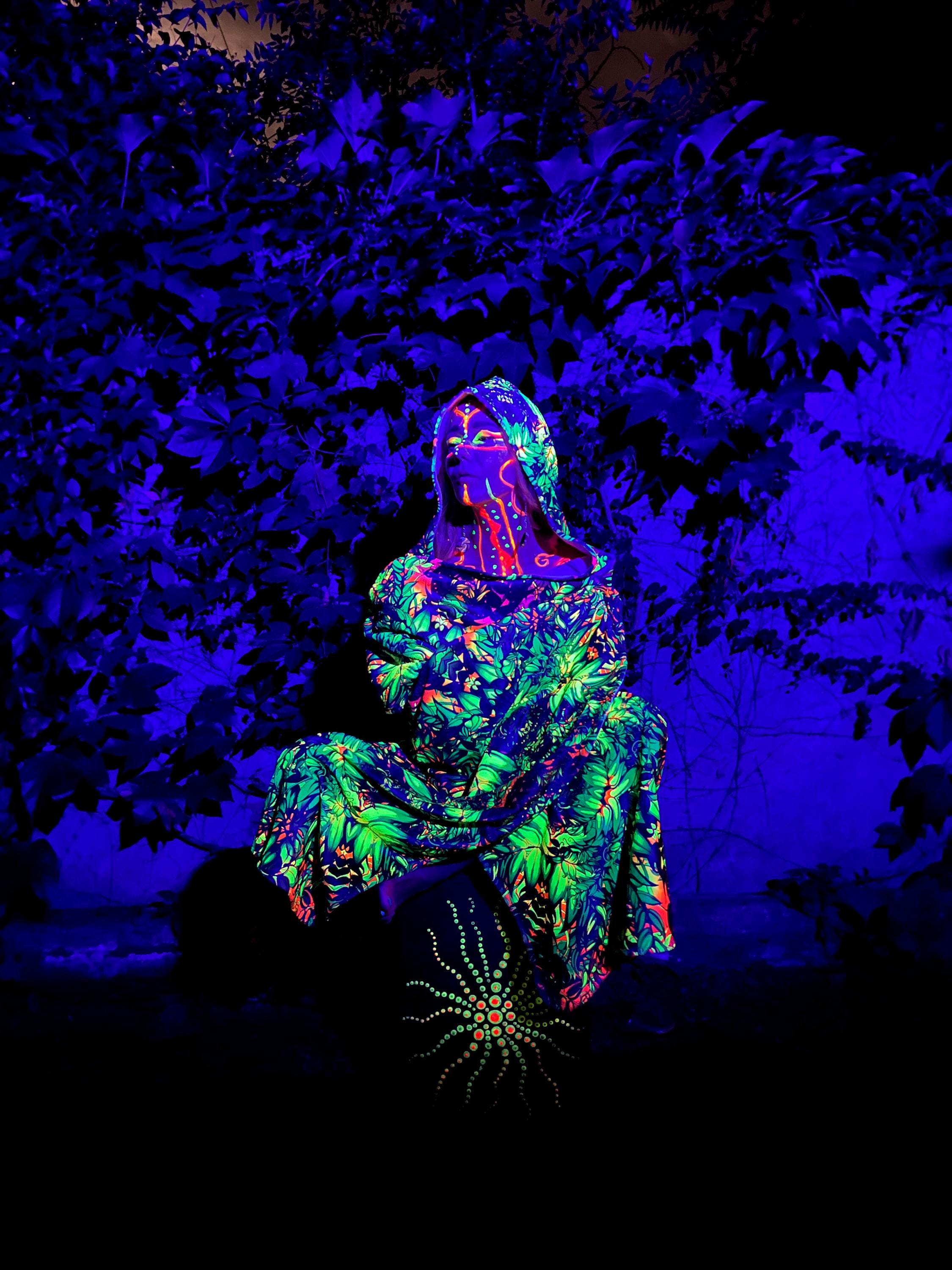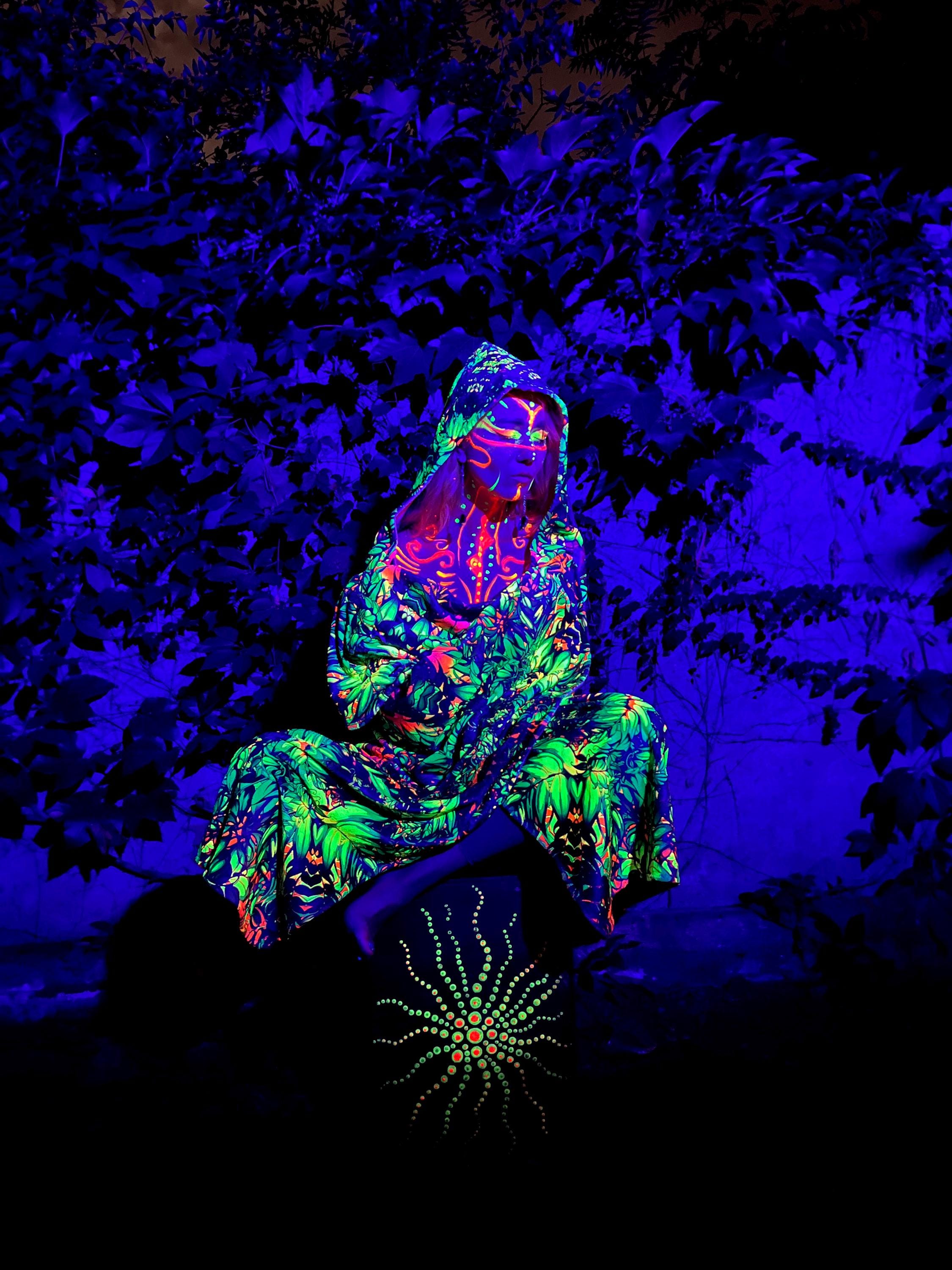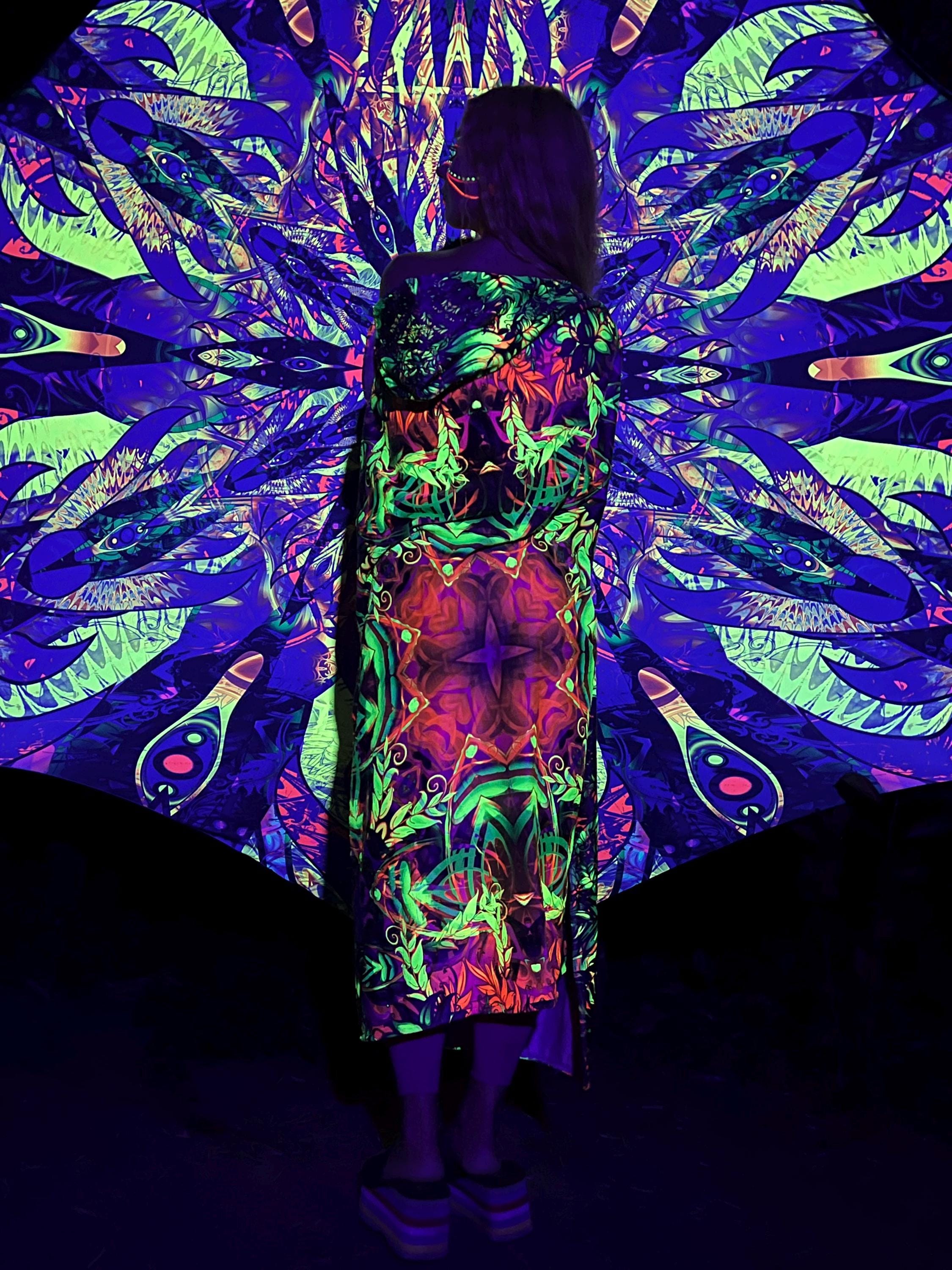 magical hoodie blankets with incredible designs that glow under ultraviolet light. This is a great gift, an original at any festival, perfect for photo shoots, relaxing on the beach or watching sunset or sunrise at an open air.