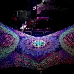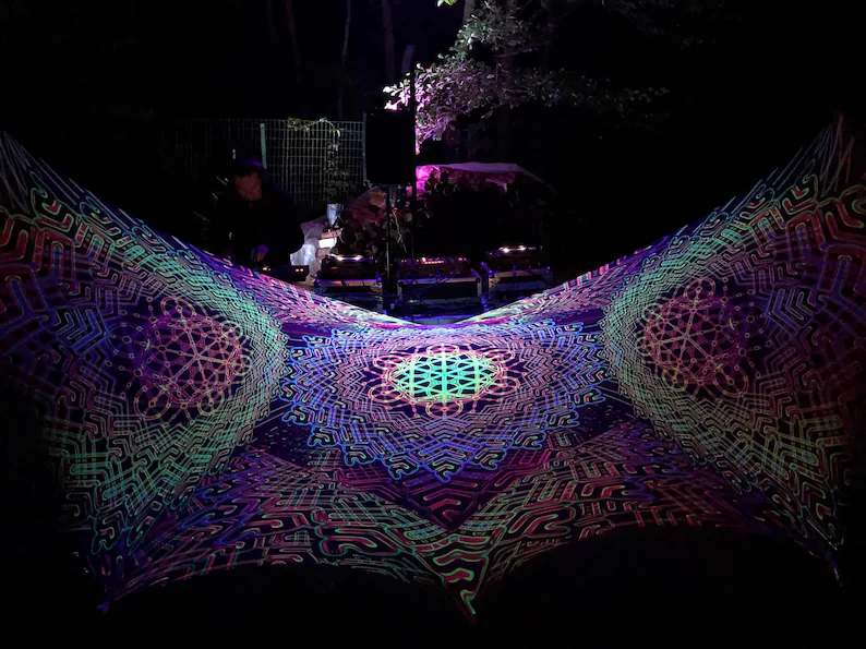 Glow in the Dark Party, DJ Booth Blacklight Tapestry, UV Psychedelic Backdrop, Art Print on Fabric, Trippy Wall Hanging