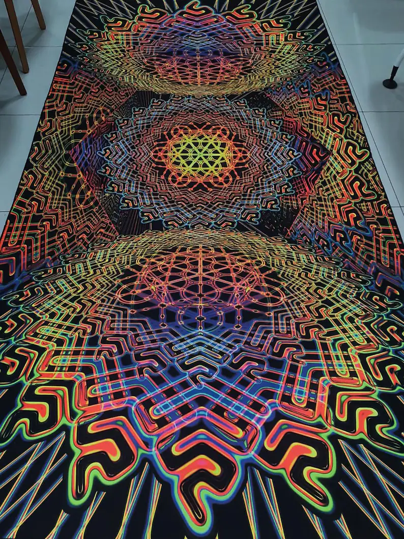 UV Blacklight Tapestry, 3D Art Print, Psychedelic Spiritual Backdrop, Neon Trippy Artwork