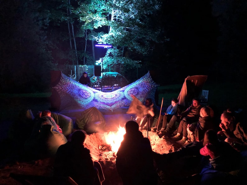 Spiritual Tapestry Blacklight trippy tapestry Glow Party Psychedelic Poster Meditation room Techno Mindfulness gift Synth Psy