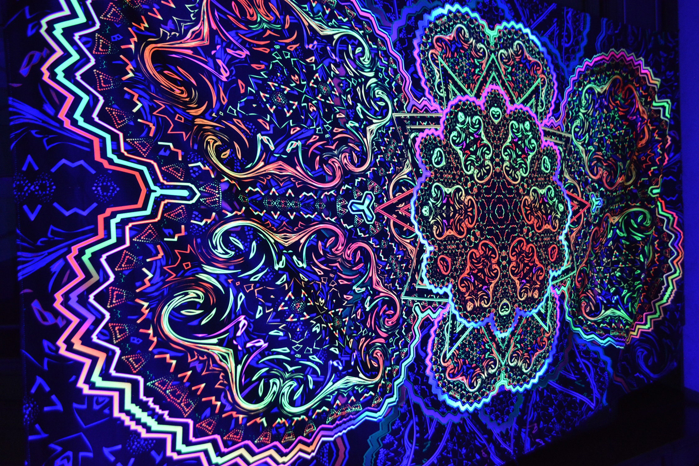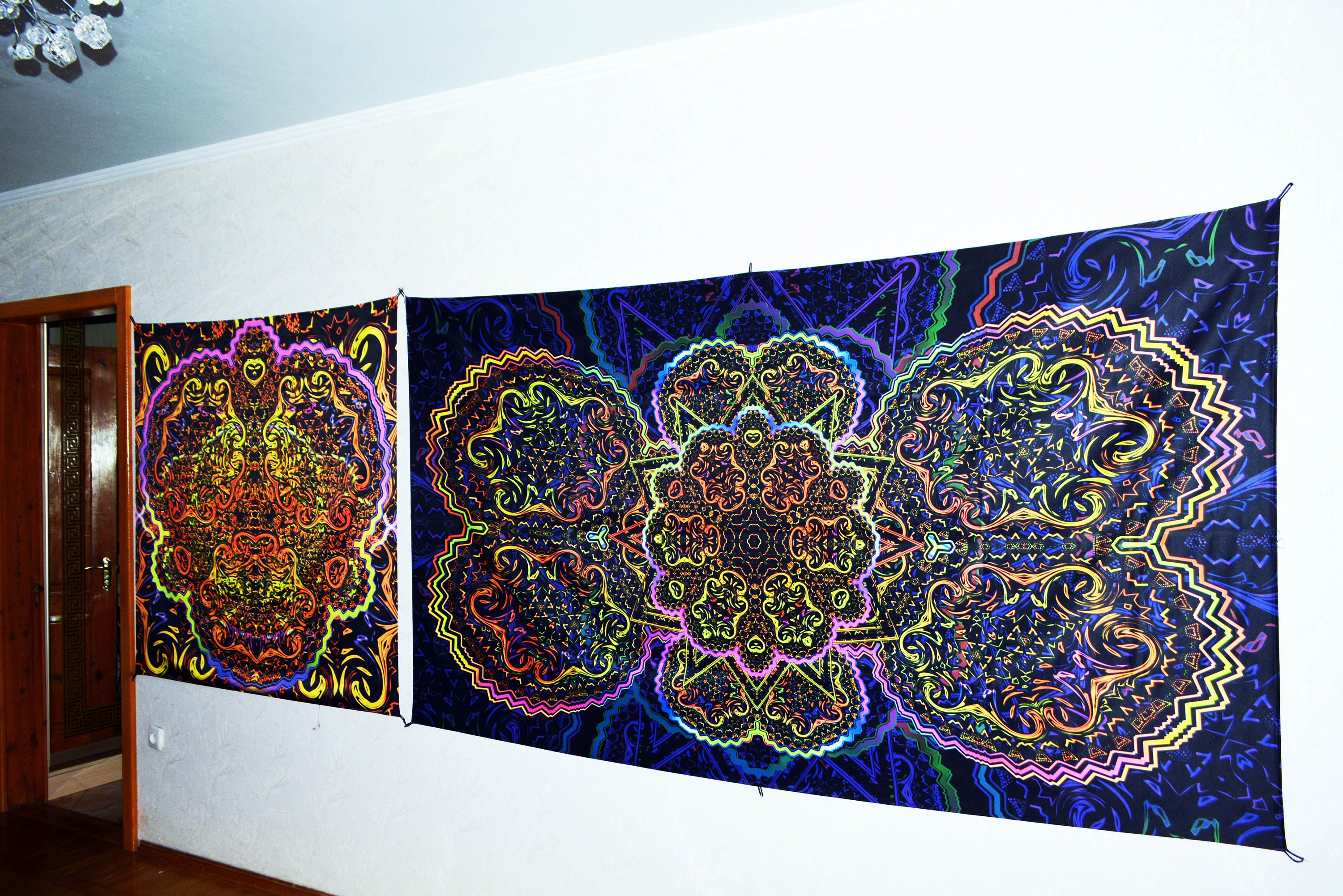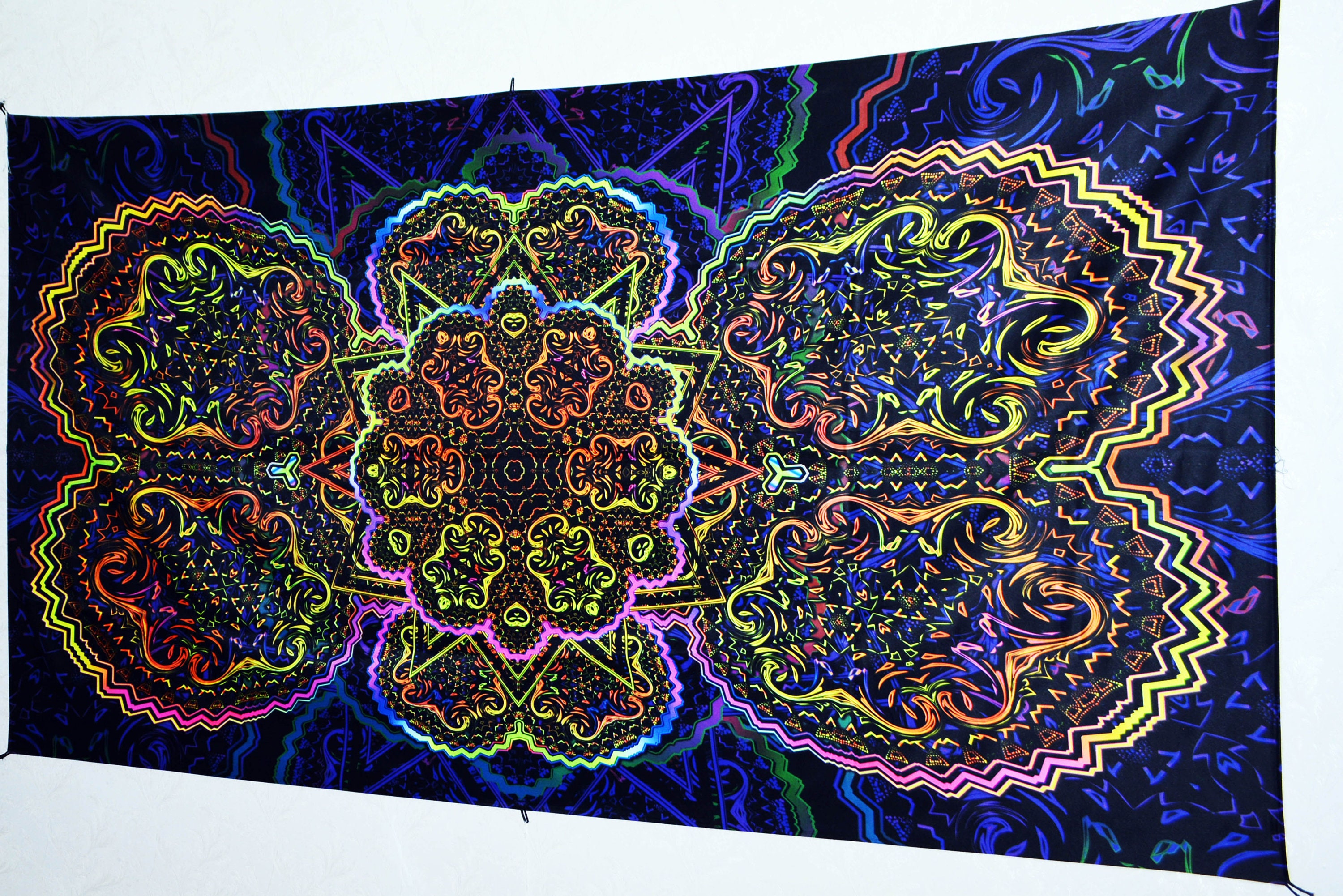 UV Psychedelic Fluorescent Trippy Tapestry "Mandalaas"